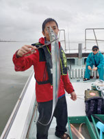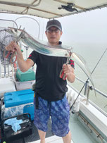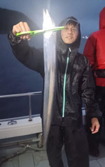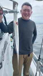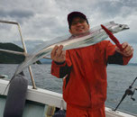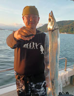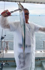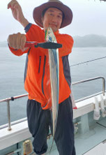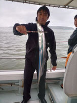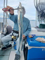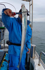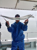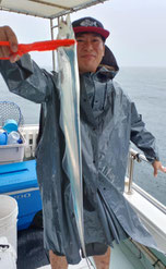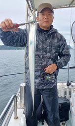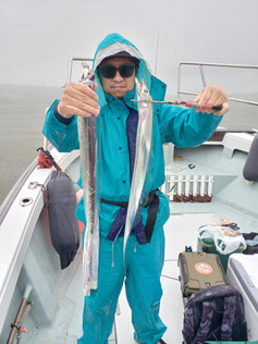 時間と共に爆風&どしゃ降りとなり、安全第一で湾内へ戻り、太刀魚を追加し半日終了しました。