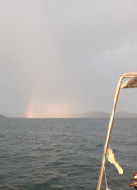 安全第一のため再度近場まで戻ると、沖の方では雷鳴が遠ざかって日が照り…(^_^;)