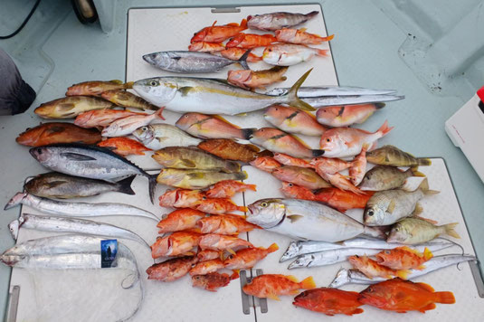 デカアコウ・アオナ・赤ハタ・イラ・真鯛・シイラ・ヒラメ・カサゴ・フエフキ・フエダイ…